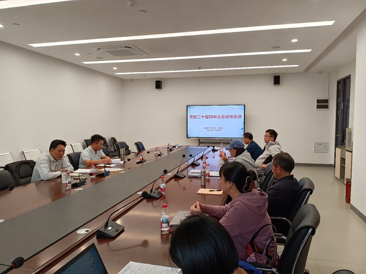 12月4日下午,我院党组织在学院综合楼336会议室召开学习贯彻党的二十届四中全会精神宣讲会。学院组建工作小组组长曾胜昌主持会议,党员教职工25人参加会议。